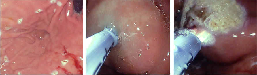 - Oppervlakkige thermische ablatie van het slijmvlies met behulp van APC.